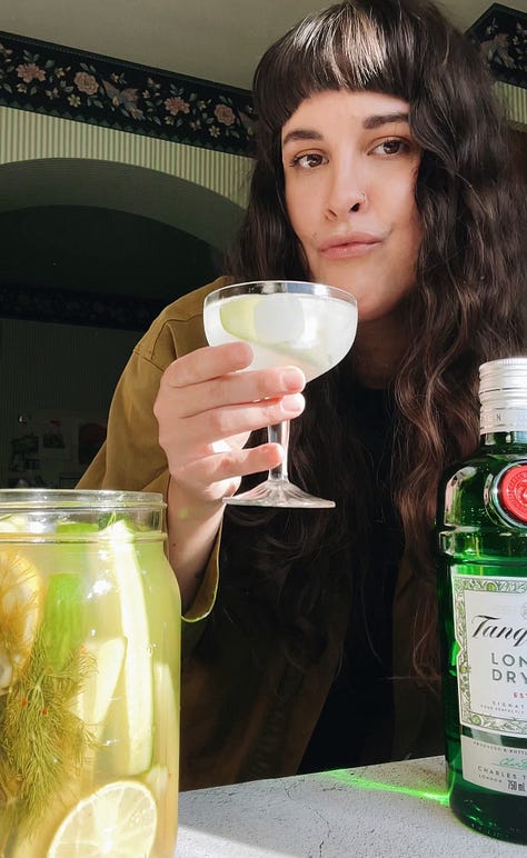 I recently had a cocktail at one of my all-time favorite places on earth that was full of gin and dill pickle juice. I loved it so damn much. Now, a long long time ago…back in my boxed wine days, I had a gin and tonic that I just did not enjoy. I don’t remember the details exactly, but I believe it was either made poorly or with the cheapest gin on the shelf, and from that moment on, I didn’t think I was a gin girly. I’ve had cocktails recently that started to change my mind, thank god…because in my curiosity, I went home and experimented with making gin and tonics to my liking. Lots of lemon or lime. Briney pickle juice. Salt. Better quality gin. The bubbliest tonic water. My mind was blown…I am a gin girly! I just needed to flex my recipe-creating muscles to find the magic combination for my own tastebuds.